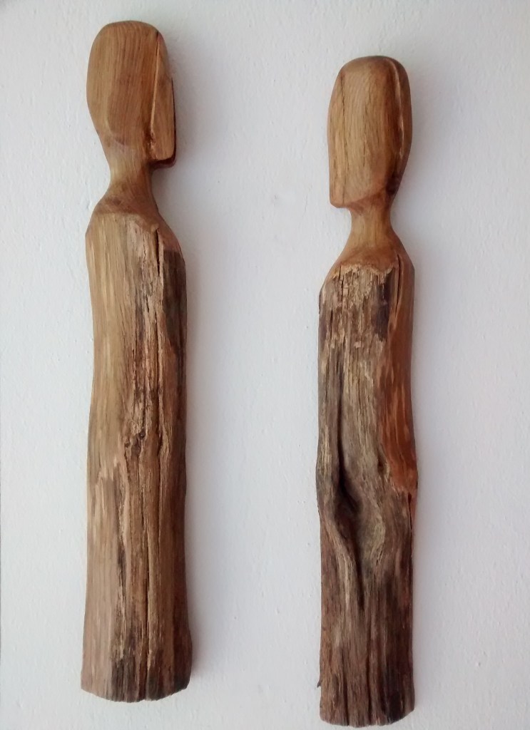 Die Holzköpfe entstehen aus alten Eichenbalken, die ich bei einem Händler in der Region kaufe oder geschenkt bekomme. Oder aus regional gesammelten Ästen.